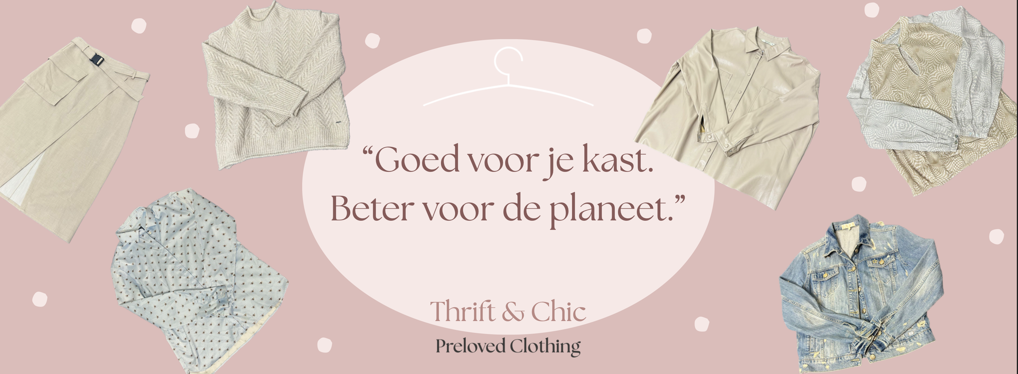 Welkom bij Thrift & Chic - Preloved Clothing. Thrift & Chic is een winkel met liefde geselecteerde preloved clothing. Mooie kleding die door een ander al is gedragen en een tweede leven verdient. Hoe mooi zou het zijn als we met zijn allen bewuster kleding gaan kopen en deze vergeten kledingstukken weer fashion parels worden.