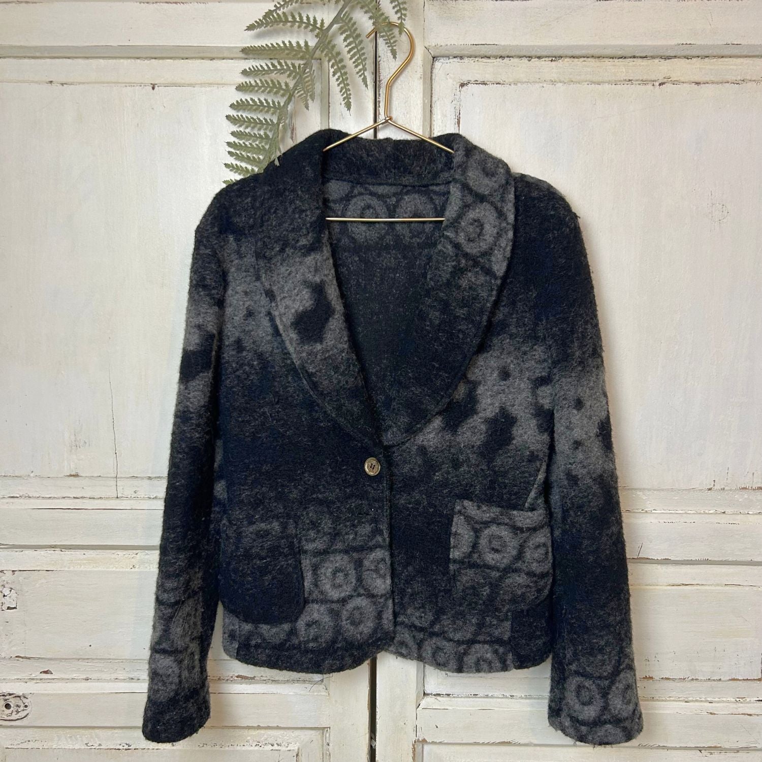 Heel mooi jasje in een soort vilt uitvoering, zit heel comfortabel en is afgewerkt met knoopjes aan de mouwen en twee zakjes op het voorpand.