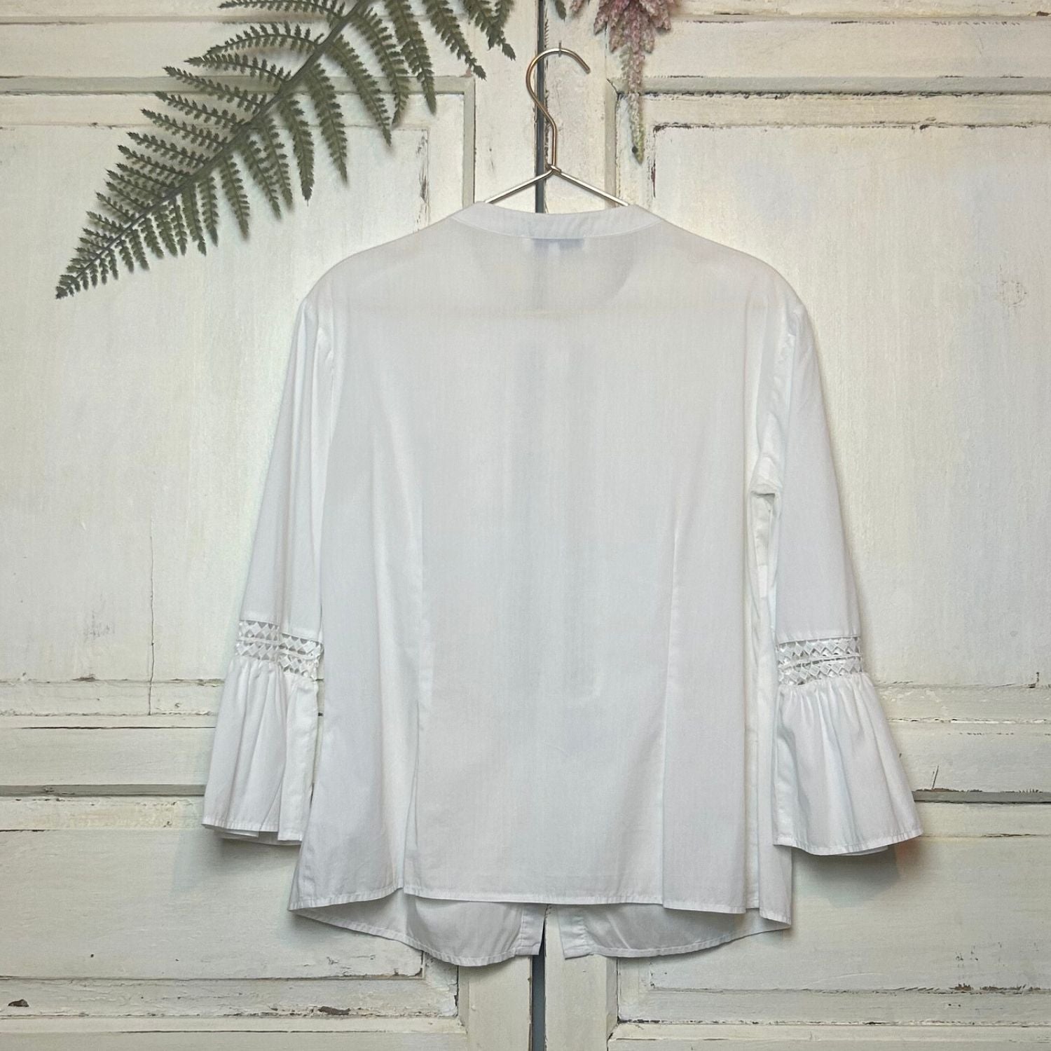 Een tijdloos en prachtig bloesje met veel broderie details. Het bloesje heeft 3/4e mouw, is licht getailleerd en heeft een opstaand boordje. Het bloesje is prachtig te dragen op een jeans of op een pantalon met een jasje of vest.