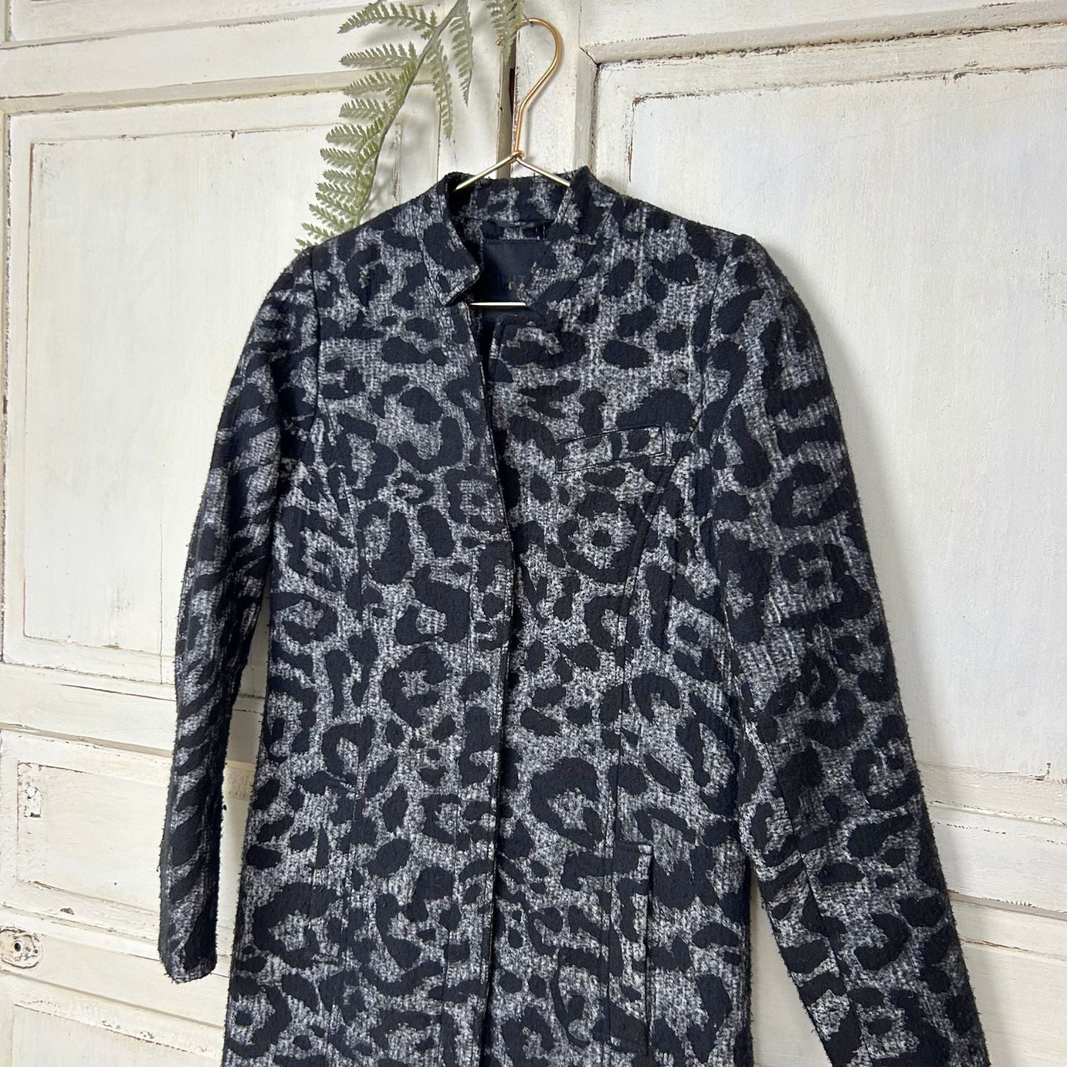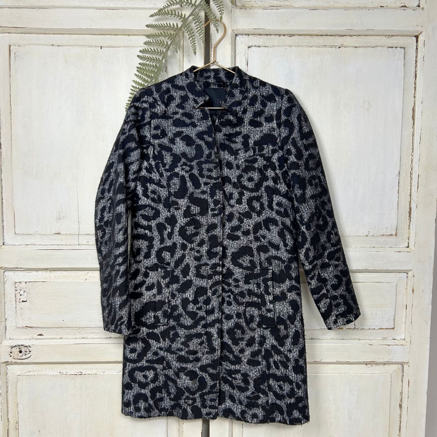 Mooie wollen panterjas in een klassieke uitvoering met opstaand boordje, blinde sluiting en steekzakken.