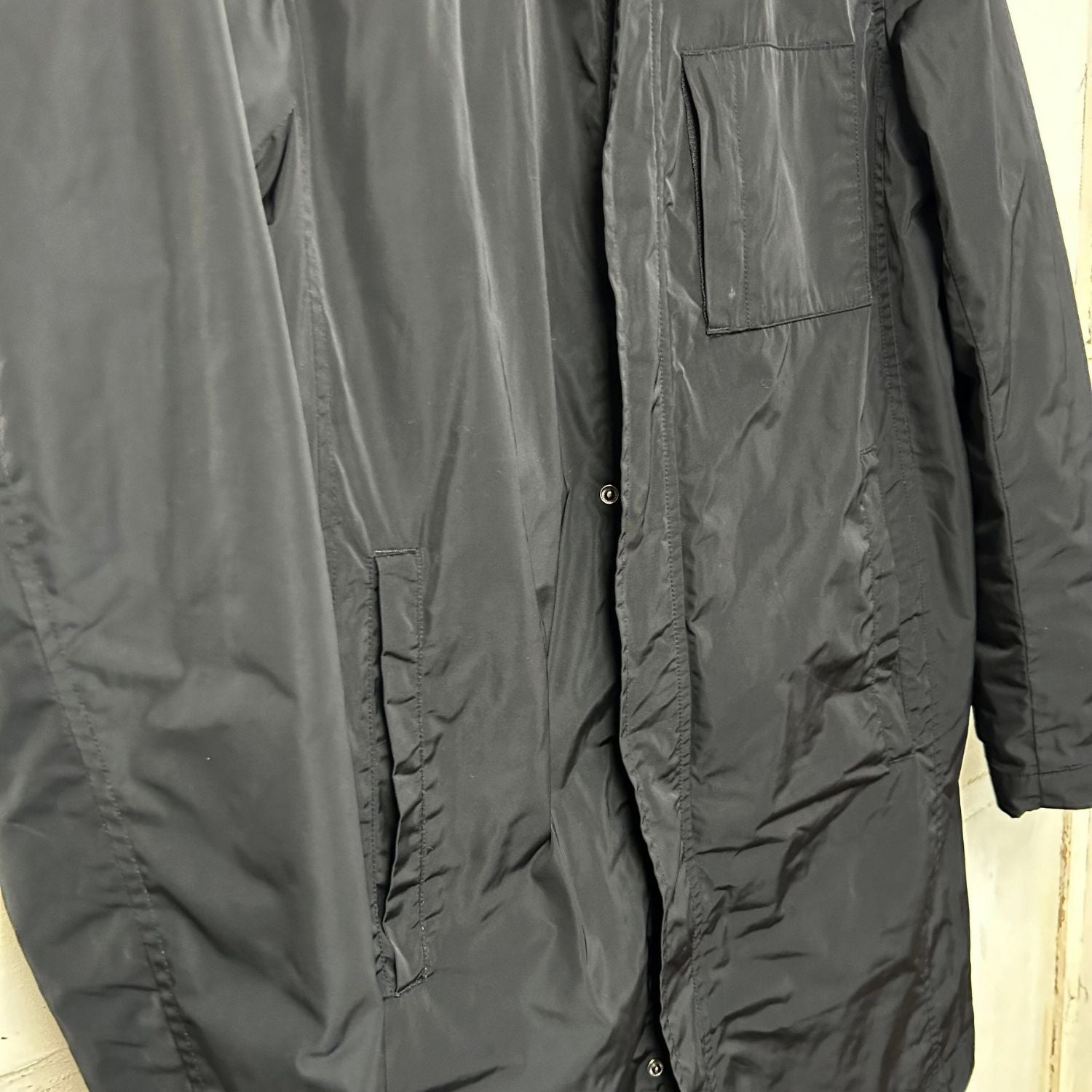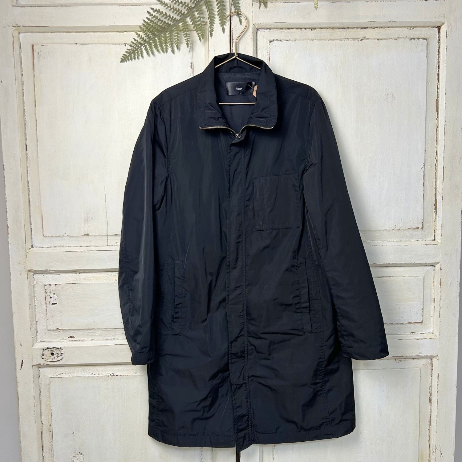 Deze zwarte lange jas is perfect om als tussenjas of zomerjas te dragen. De jas heeft een ritssluiting met knopen, twee steekzakken en een borstzakje.