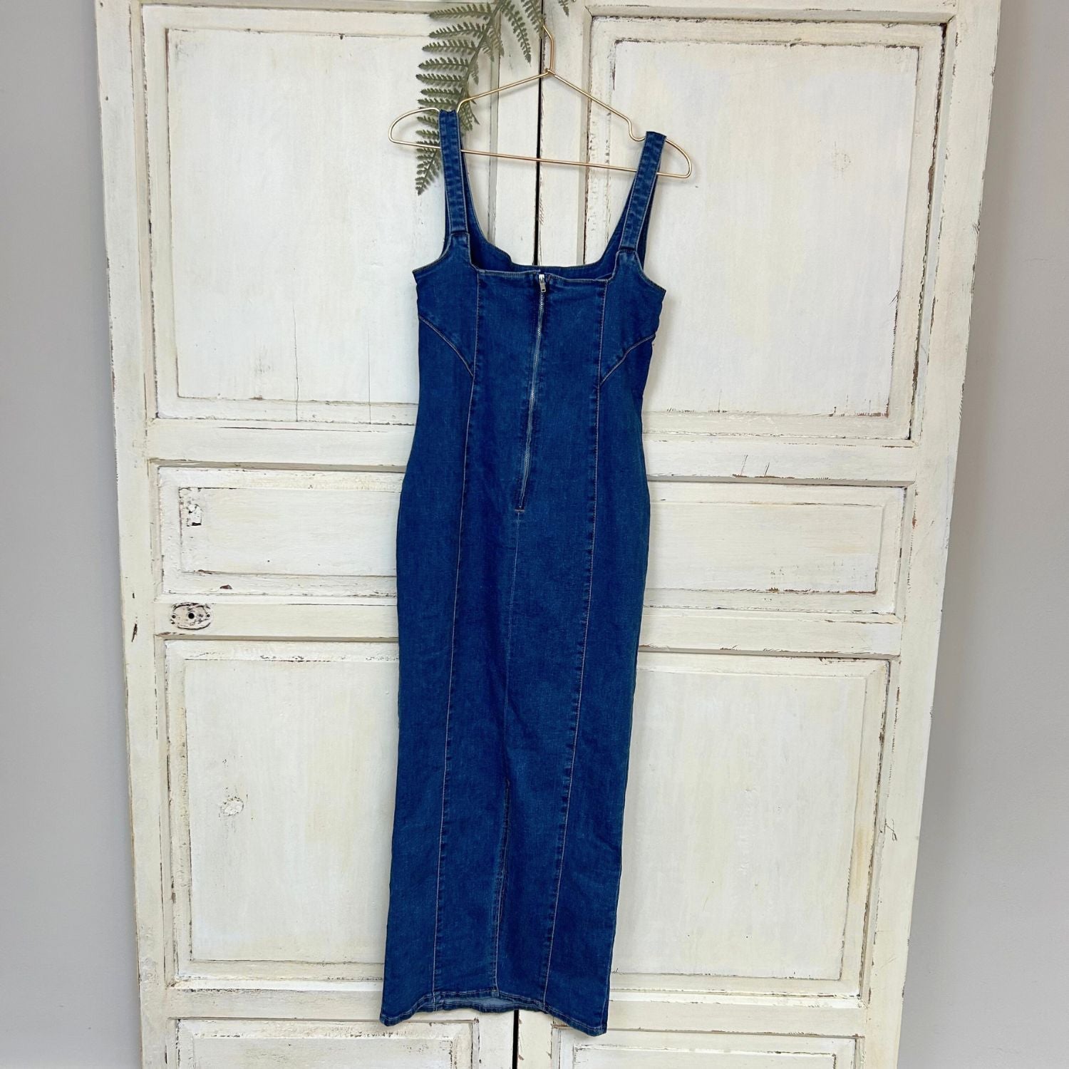 Mooie mouwloze spijkerjurk met ronde hals en mooi afgewerkt met stiksels.