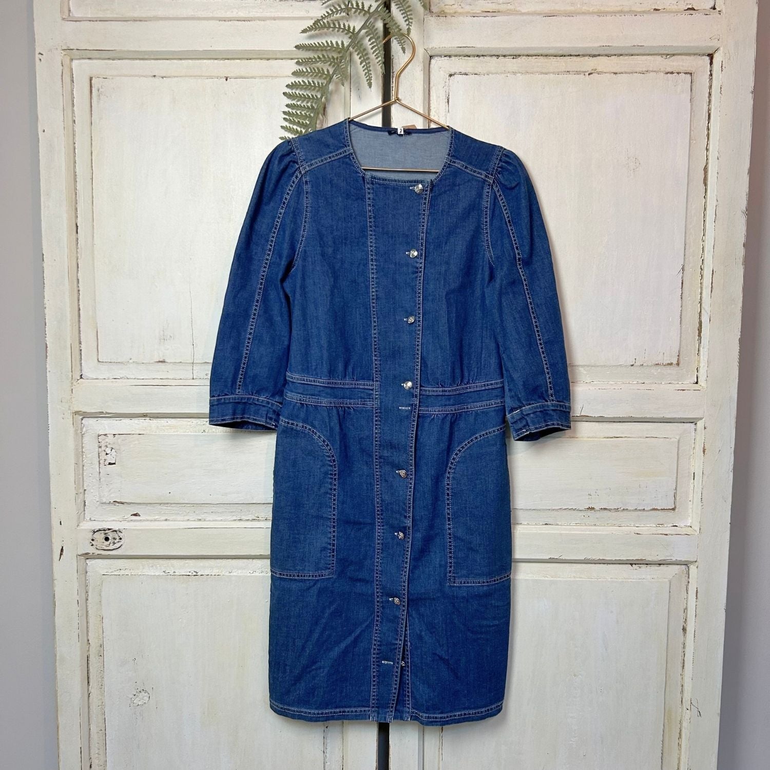 Hoe tof is deze spijkerjurk? De jurk heeft 3/4 mouw, een ronde hals, knopen en leuke detail stiksels.
