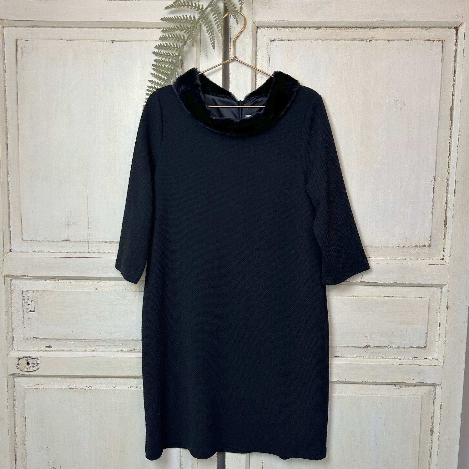 Een warme jurk met 3/4 mouw en een vacht kraagje.