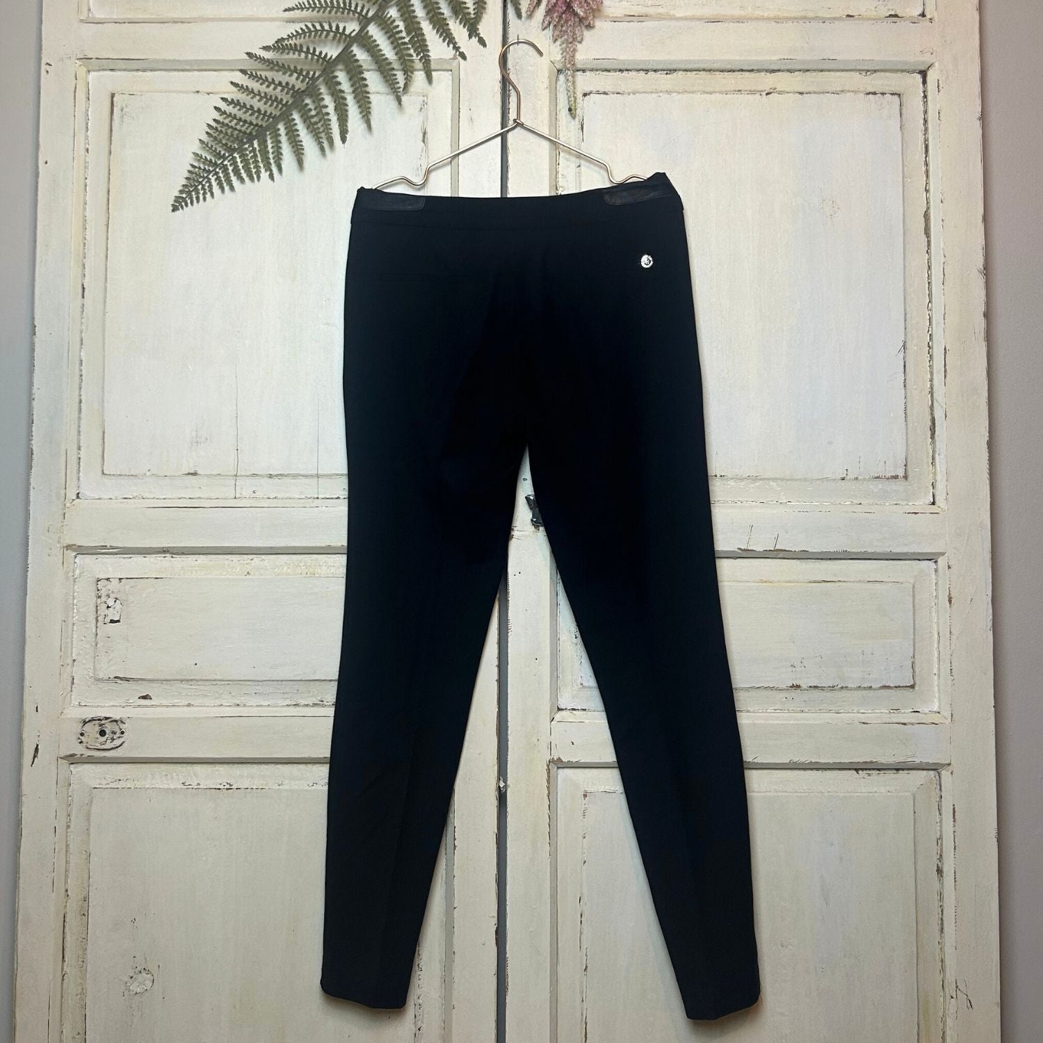 Deze zwarte pantalon heeft een leren band en is met alles te combineren! De pantalon heeft een slank model.