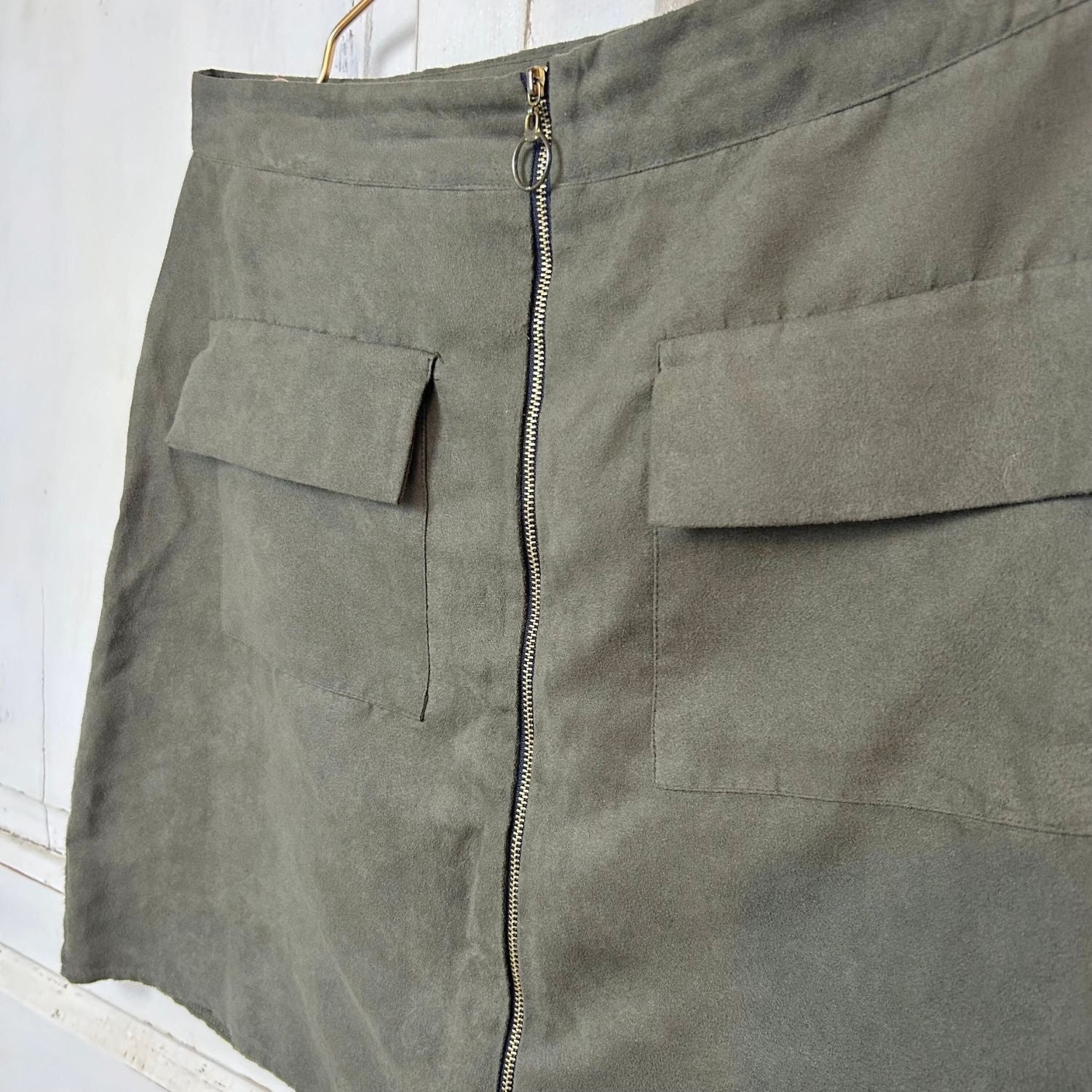 Leuk rokje met een velvet uitstraling. Er loopt een rits over de voorkant. Leuk met een gebreide trui en een panty met een boot.