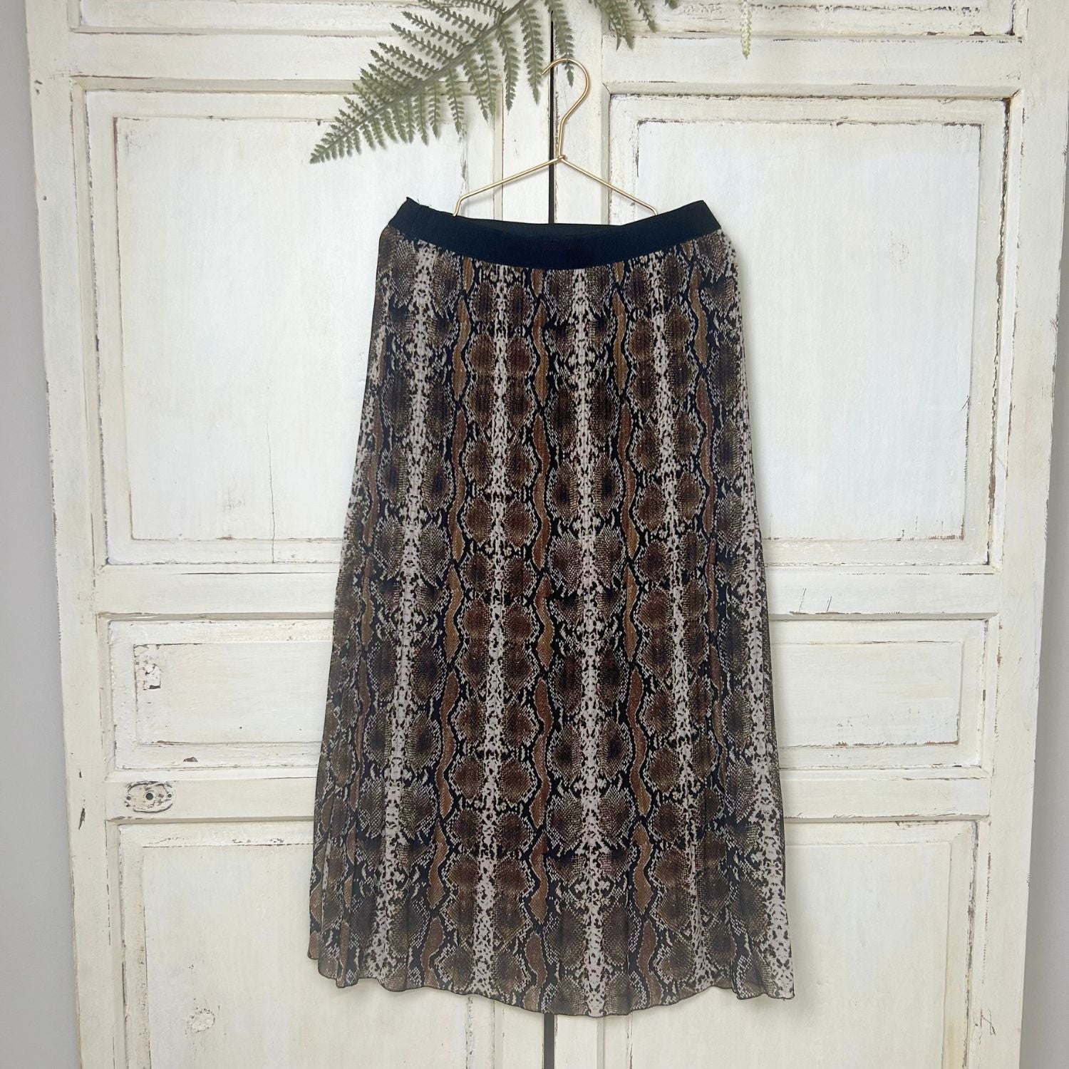 Deze leuke lange rok heeft een mooie slangenprint in een mooie kleurencombinatie.