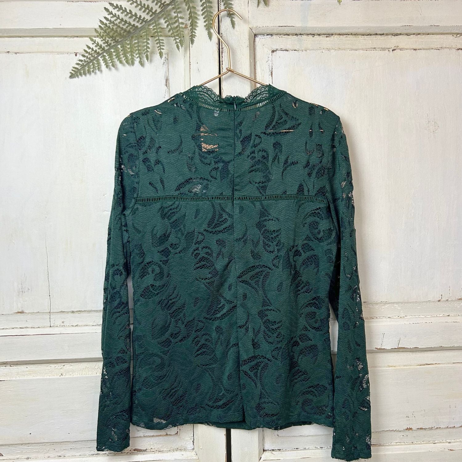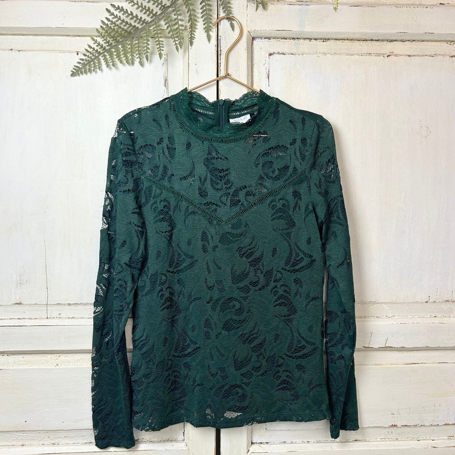 Leuke kanten top met opstaand boortje en achter over de rug een streep detail. De top heeft een ritssluiting. Leuk om zo te dragen maar ook leuk met een jasje erover.
