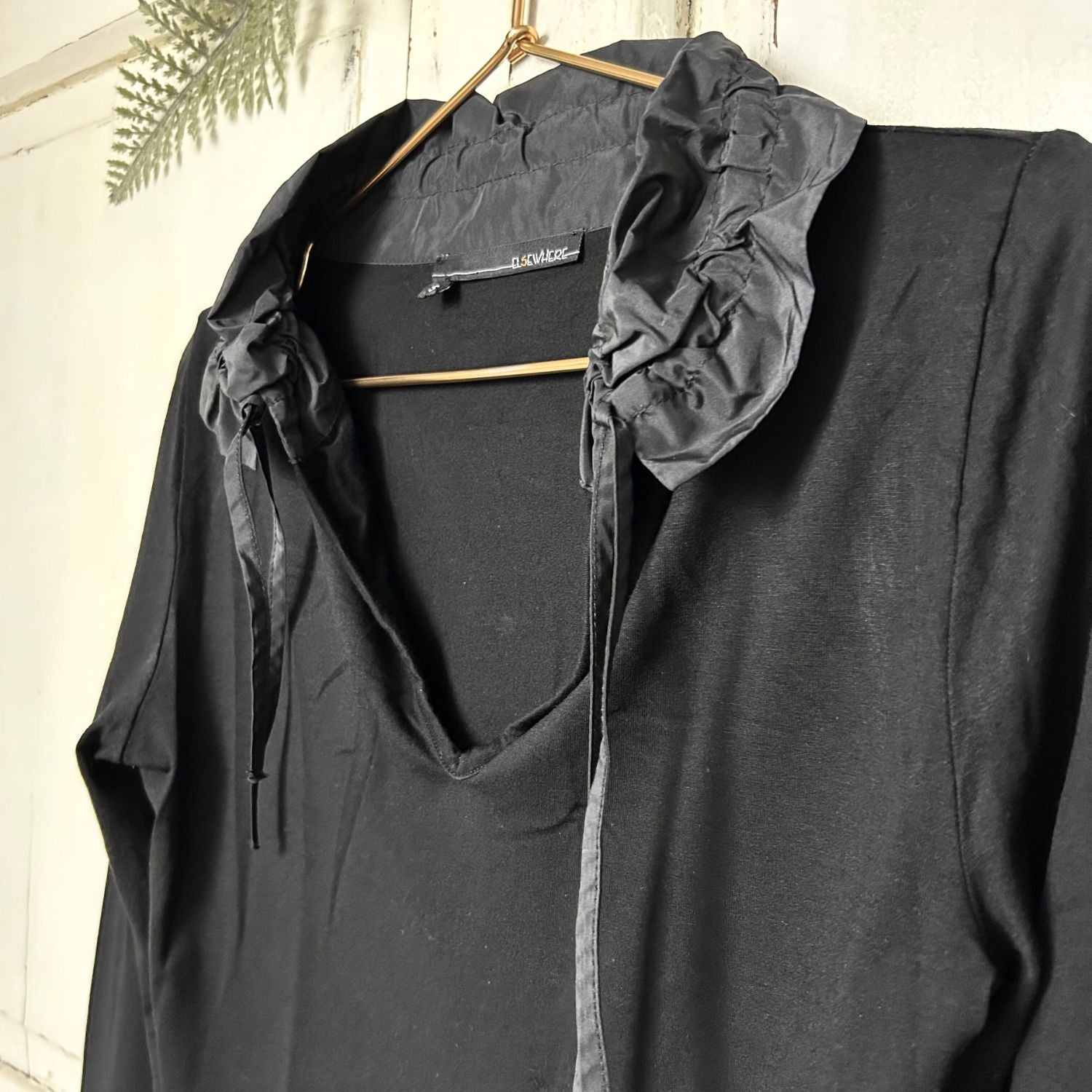Heel leuk dit truitje met lange mouw. Er zit een kraagje van parachute stof op, dit materiaal komt terug in de manchetten.