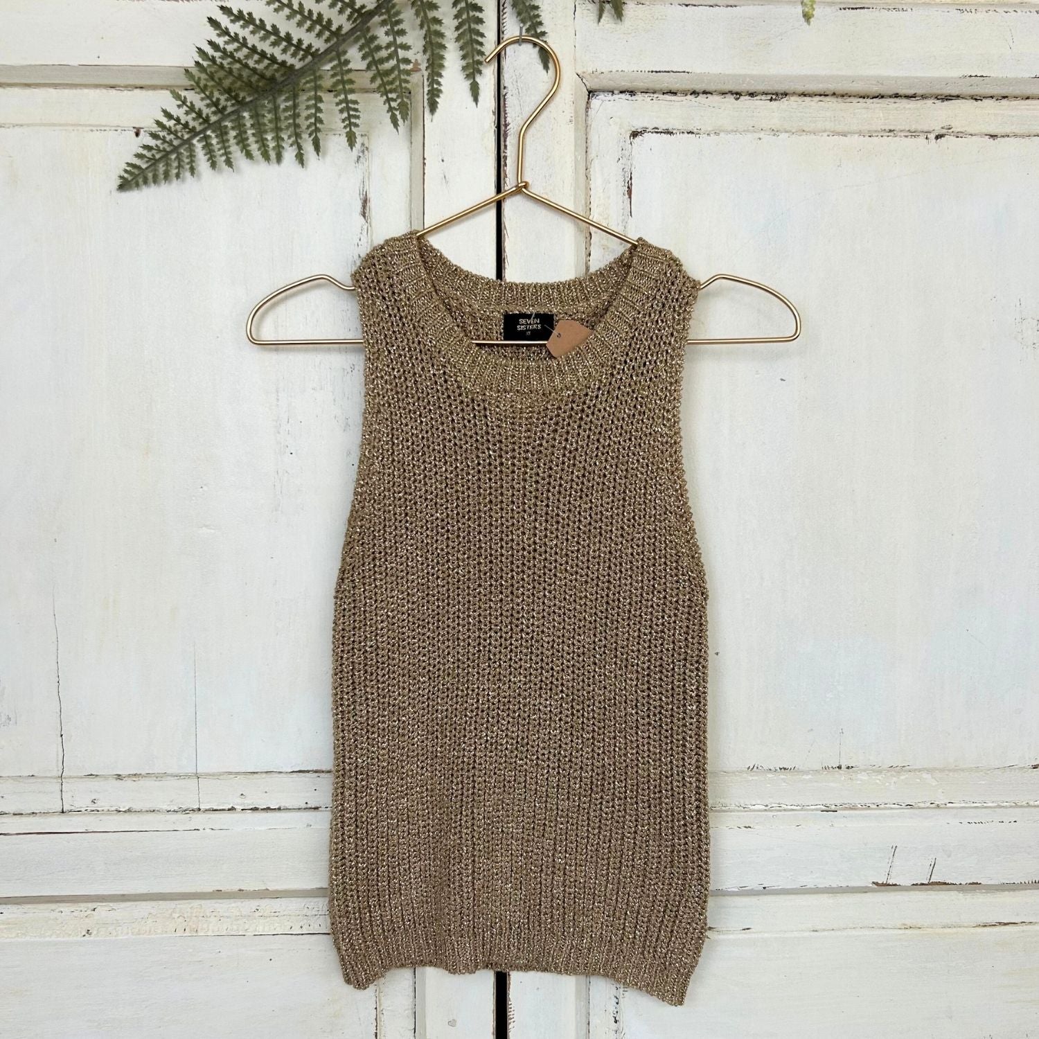 Hoe gaaf is deze gouden gebreide top? De top is perfect voor een avondje uit of een andere speciale gelegenheid. Combineer de top met een zwarte pantalon of een zwart broekrokje.