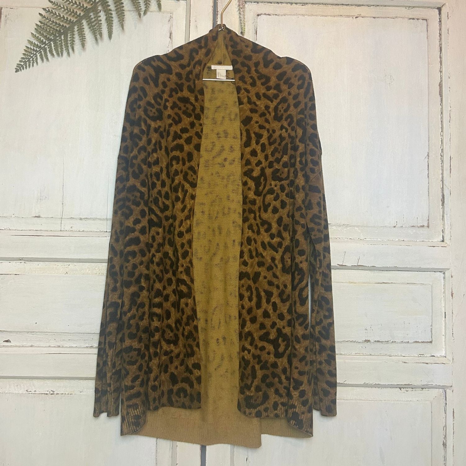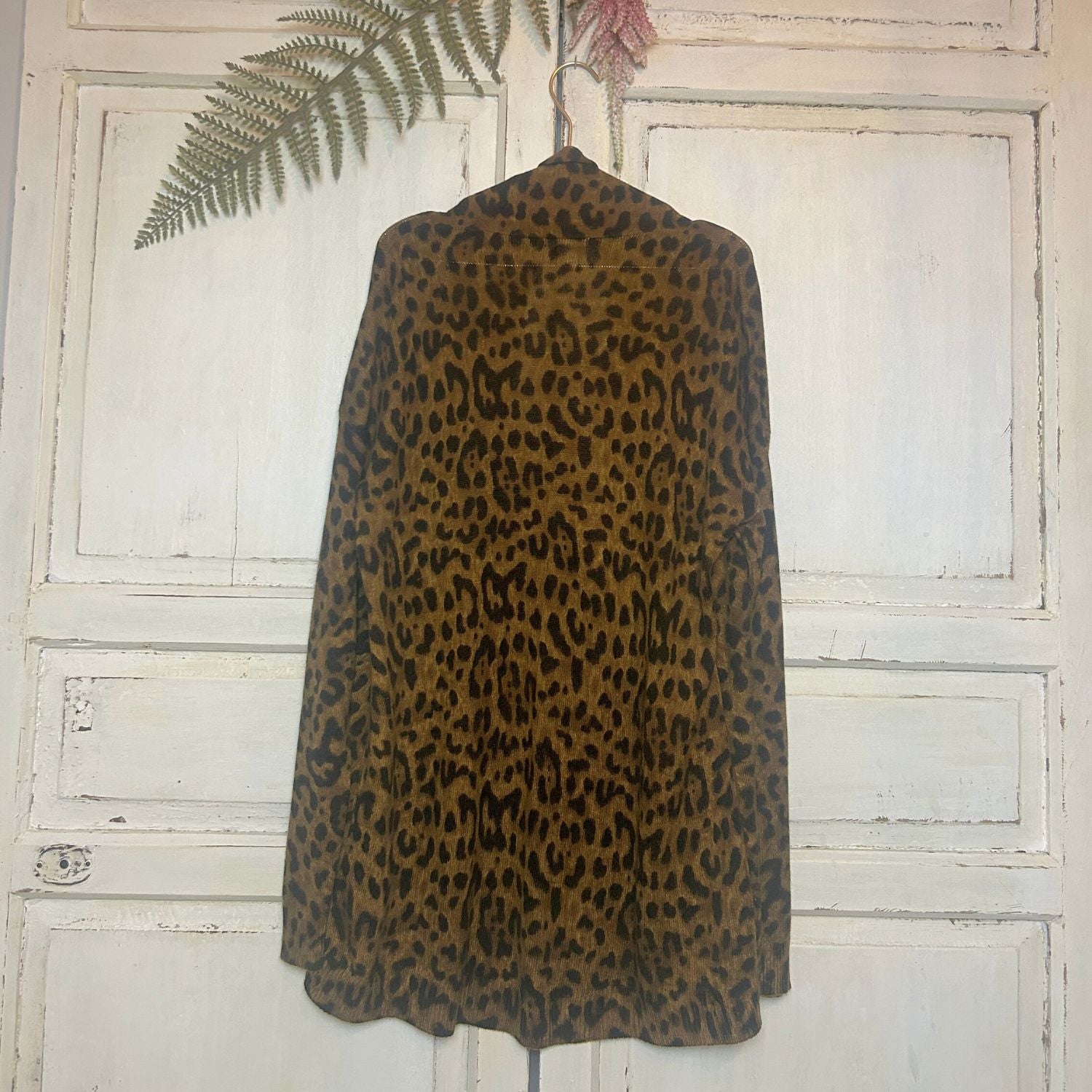 Dit vest met panterprint is nu helemaal trendy! Het vest valt tot net boven de knieën. Draag het vest op een donkere jeans of pantalon.